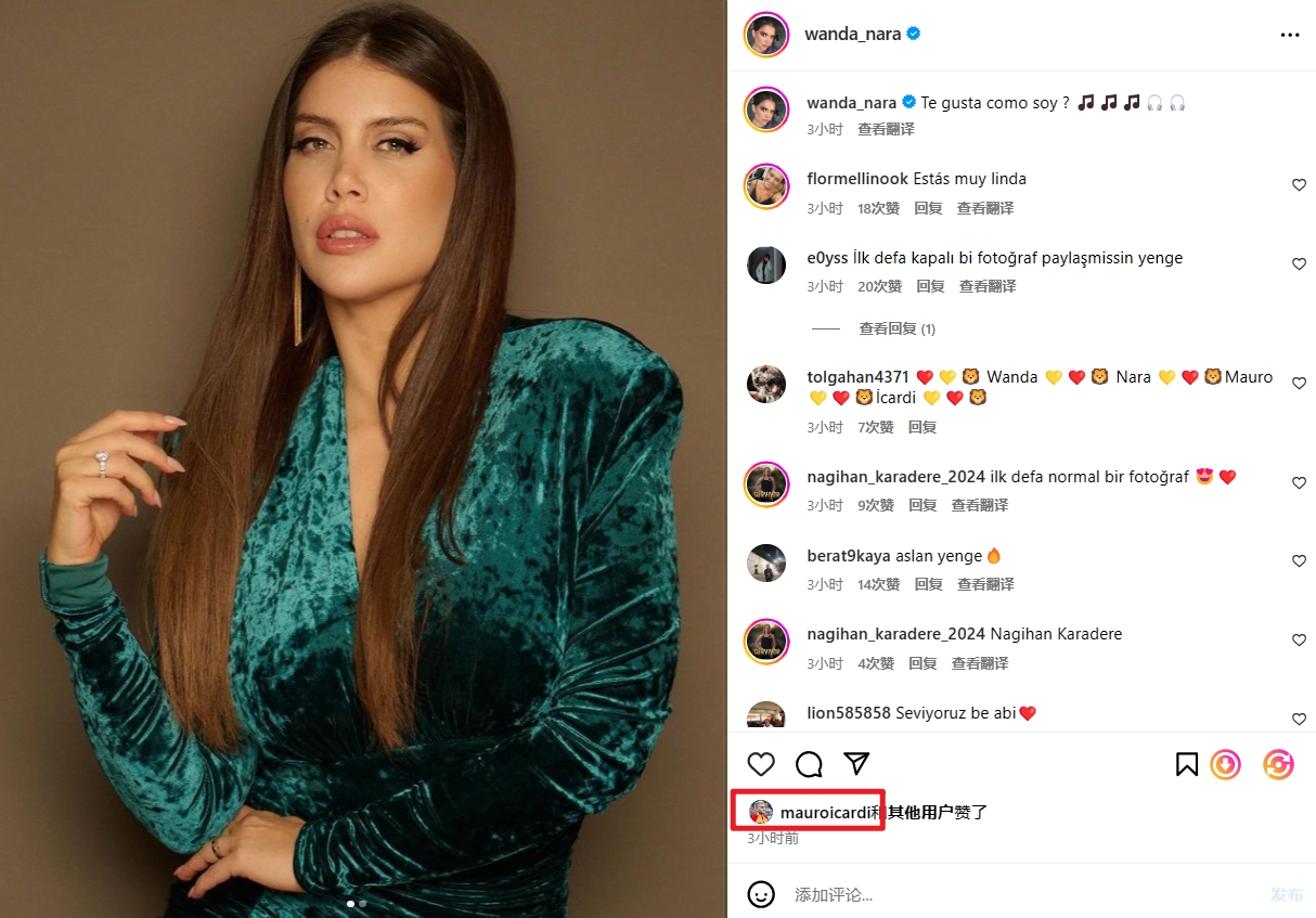 旺达晒写真照+发问:喜欢我吗?伊卡尔迪点赞