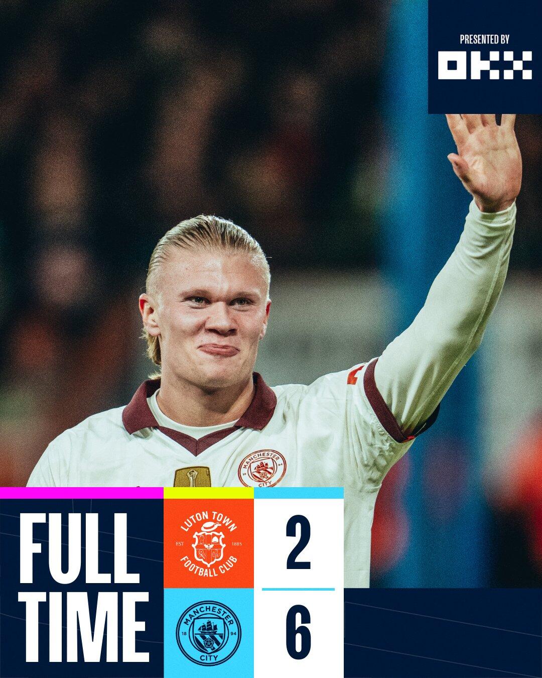 足总杯第5轮,曼城客场对阵卢顿,哈兰德五子登科,德布劳内助攻大四喜,最终曼城6-2卢顿晋级八强。
