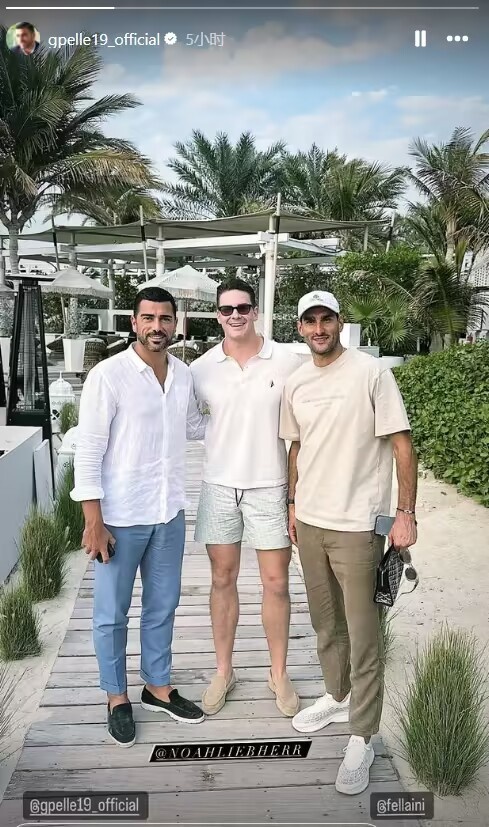 老友会!前泰山外援佩莱更新社媒晒度假照,费莱尼一同出镜