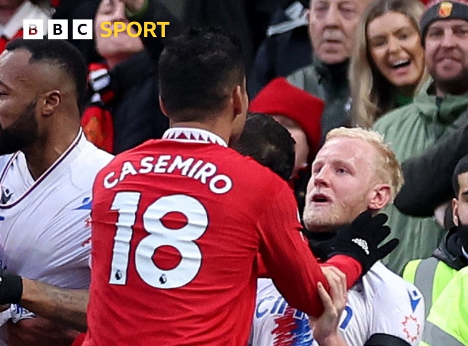上赛季曼联主场对阵水晶宫,双方爆发冲突,卡塞米罗因锁喉动作被红牌罚下↓