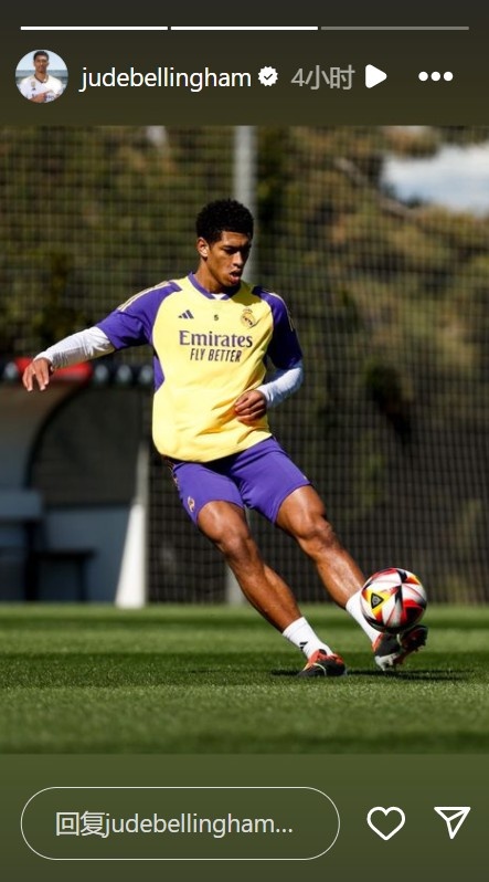 2月28日,贝林厄姆更新社媒,他晒出了自己进行有球训练的照片,不过记者Arancha Rodríguez透露,贝林厄姆周末能否出战瓦伦西亚尚不确定。
