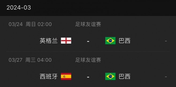巴西三月份友谊赛赛程↓