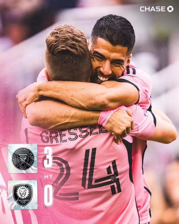 第3分钟,迈阿密国际闪击得手!梅西中路传到右路格雷塞尔再传到门前苏亚雷斯推射破门,迈阿密国际1-0奥兰多城。↓