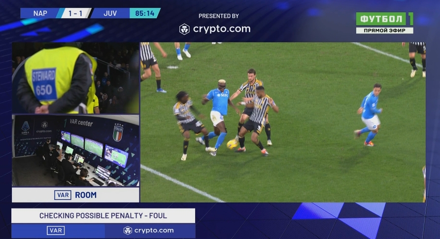 03月04日讯 尤文vs那不勒斯第86分钟,农热踩踏奥斯梅恩,裁判看VAR后判罚点球!奥斯梅恩点射被扑但是拉斯帕多里补时破门。此时比分变为那不勒斯2-1尤文。