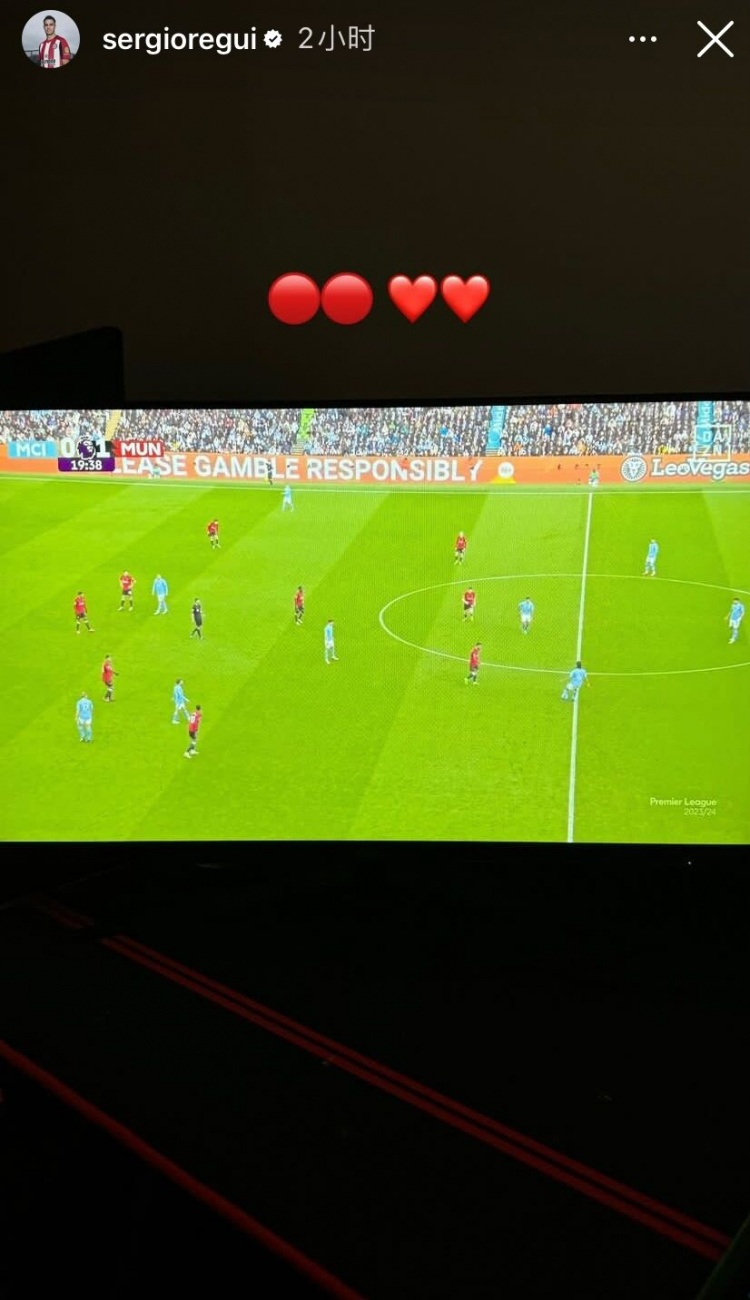在拉什福德破门后,雷吉隆晒出比赛画面,庆祝曼联取得领先,不过最终球队以失利告终。