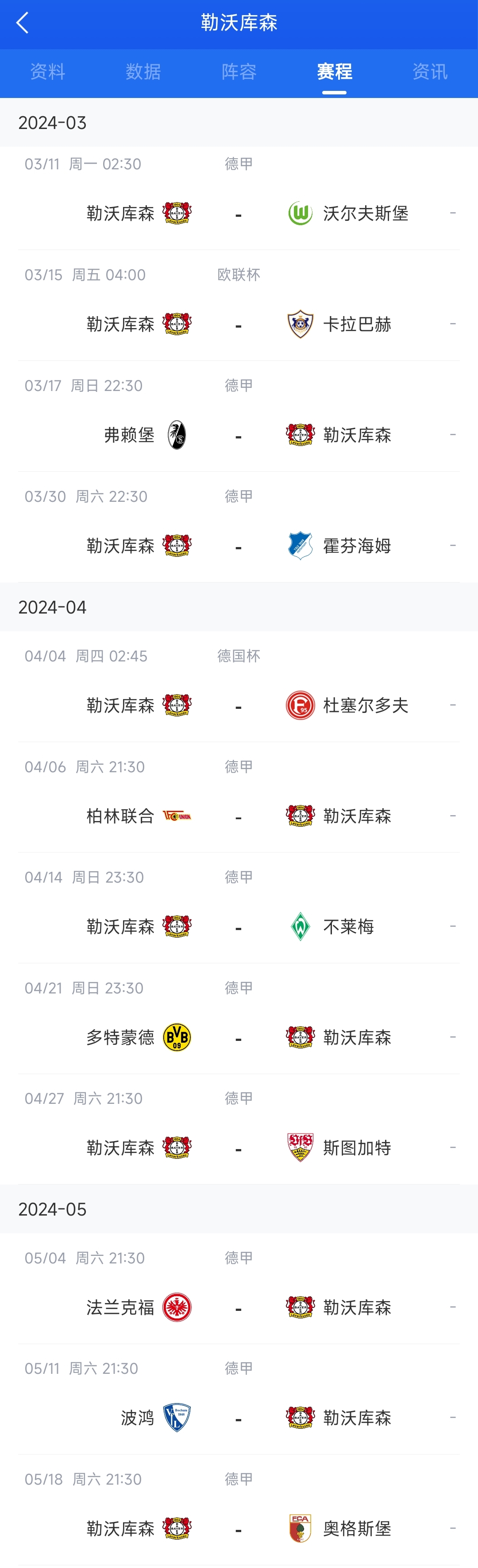 03月04日讯 德甲第24轮,勒沃库森客场2-0轻取科隆,德甲24轮不败&赛季34场不败。