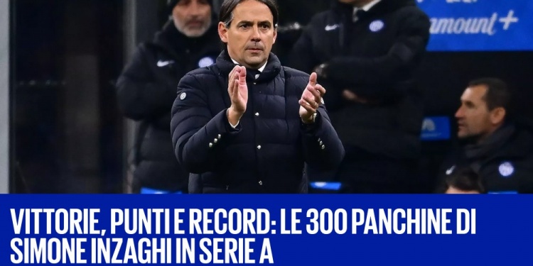 据国米官网统计,前300场意甲比赛中取得179胜,小因扎吉已经成为意甲联赛前300场比赛取得胜利次数最多的教练。