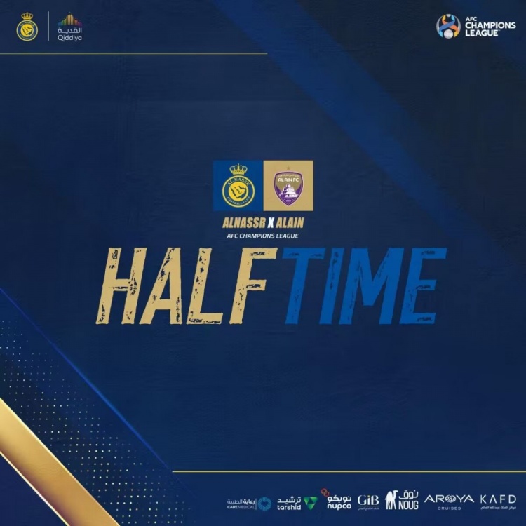 上半场比赛结束,利雅得胜利0-1阿尔艾因。