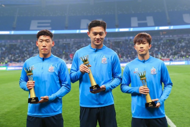 赛前张锐先生为朱辰杰、蒋圣龙、谢鹏飞颁发23年中超最佳阵容奖