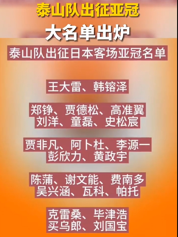 决战!泰山出征亚冠大名单出炉,克雷桑大概率复出!