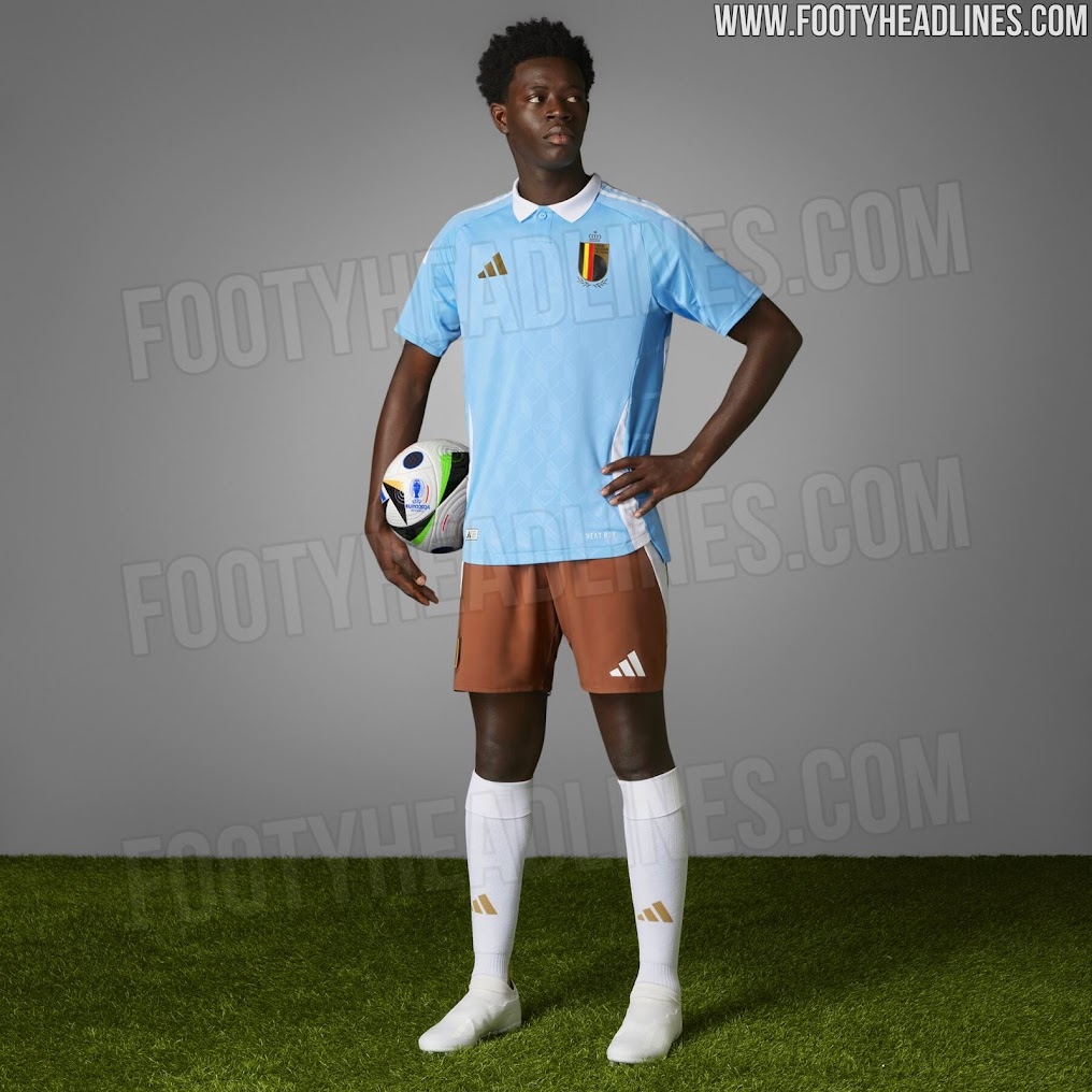 比利时2024年欧洲杯客场球衣由阿迪达斯制造,球衣设计采用了白色Polo领,主色调为浅蓝色,搭配棕色球裤和白色球袜,与丁丁的穿搭类似。据悉,这款球衣将在3月14日星期四正式推出。