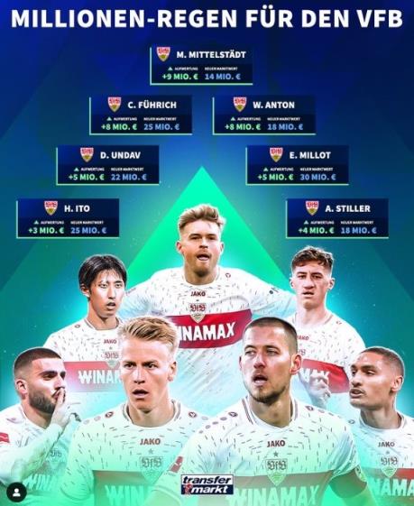 3月28日讯 《转会市场》在今日更新了德甲球员身价榜,斯图加特多人身价上涨: