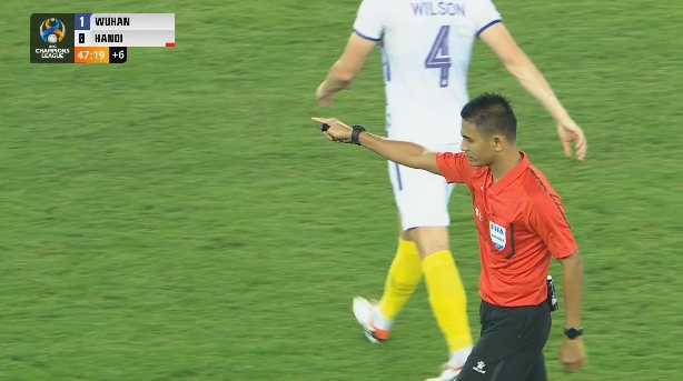 10月24日讯 亚冠小组赛J组第3轮,武汉三镇vs河内FC。上半场第45分钟,韦世豪两连击破门,三镇1-0领先!