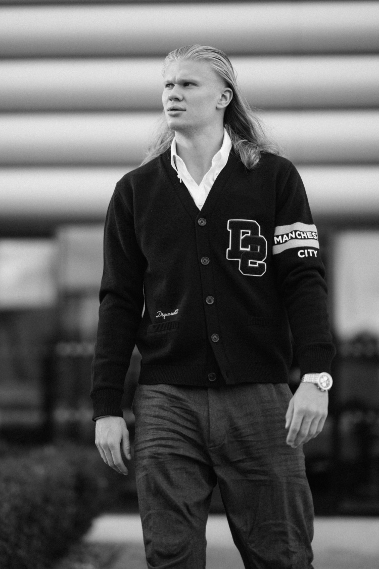 曼城官方账号晒出球员们启程前往瑞士的照片,其中哈兰德把头发散开,身穿曼城与Dsquared2联名系列服装,尽显酷范。