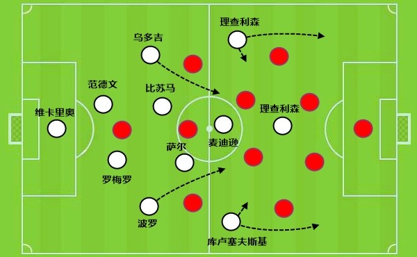 相对来讲,最大的亮点,还是对于边后卫的使用。尤其是左后卫乌多吉,有着很高的水准,给波帅的战术体系提供了很多新内容。