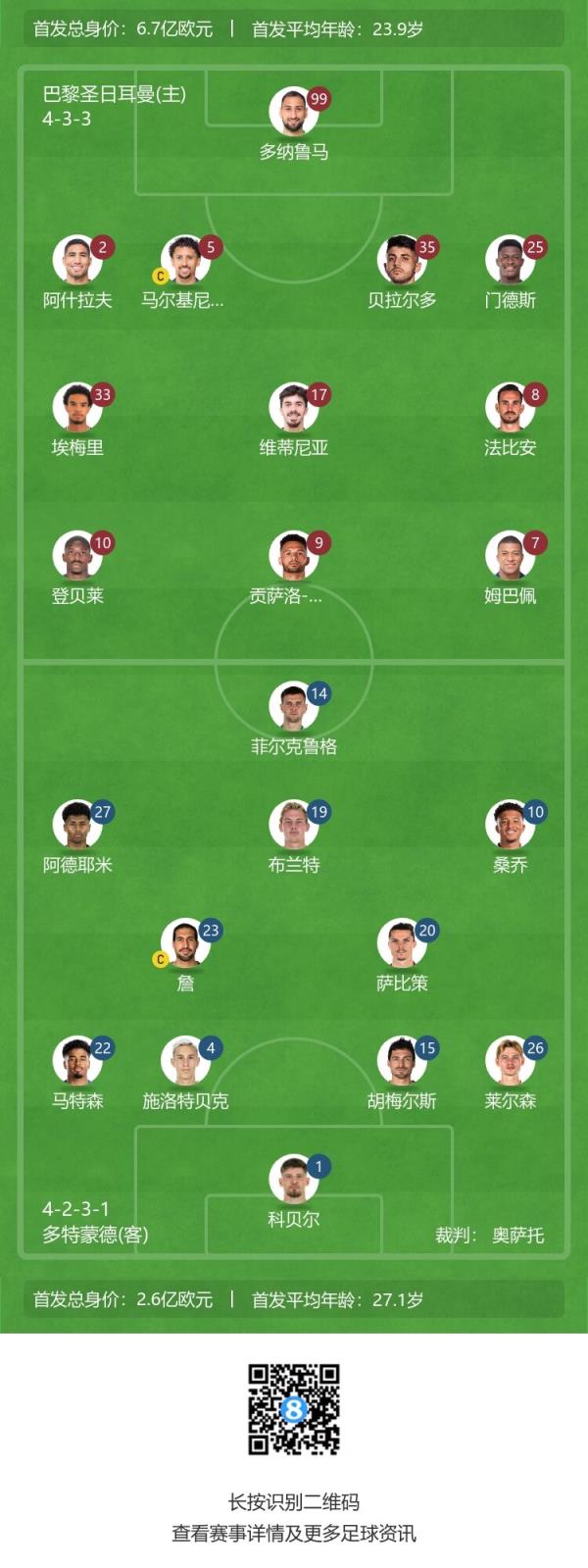 05月08日讯 欧冠半决赛次回合,巴黎主场对阵多特。赛前首发公布,姆巴佩回到熟悉的左边锋位置。