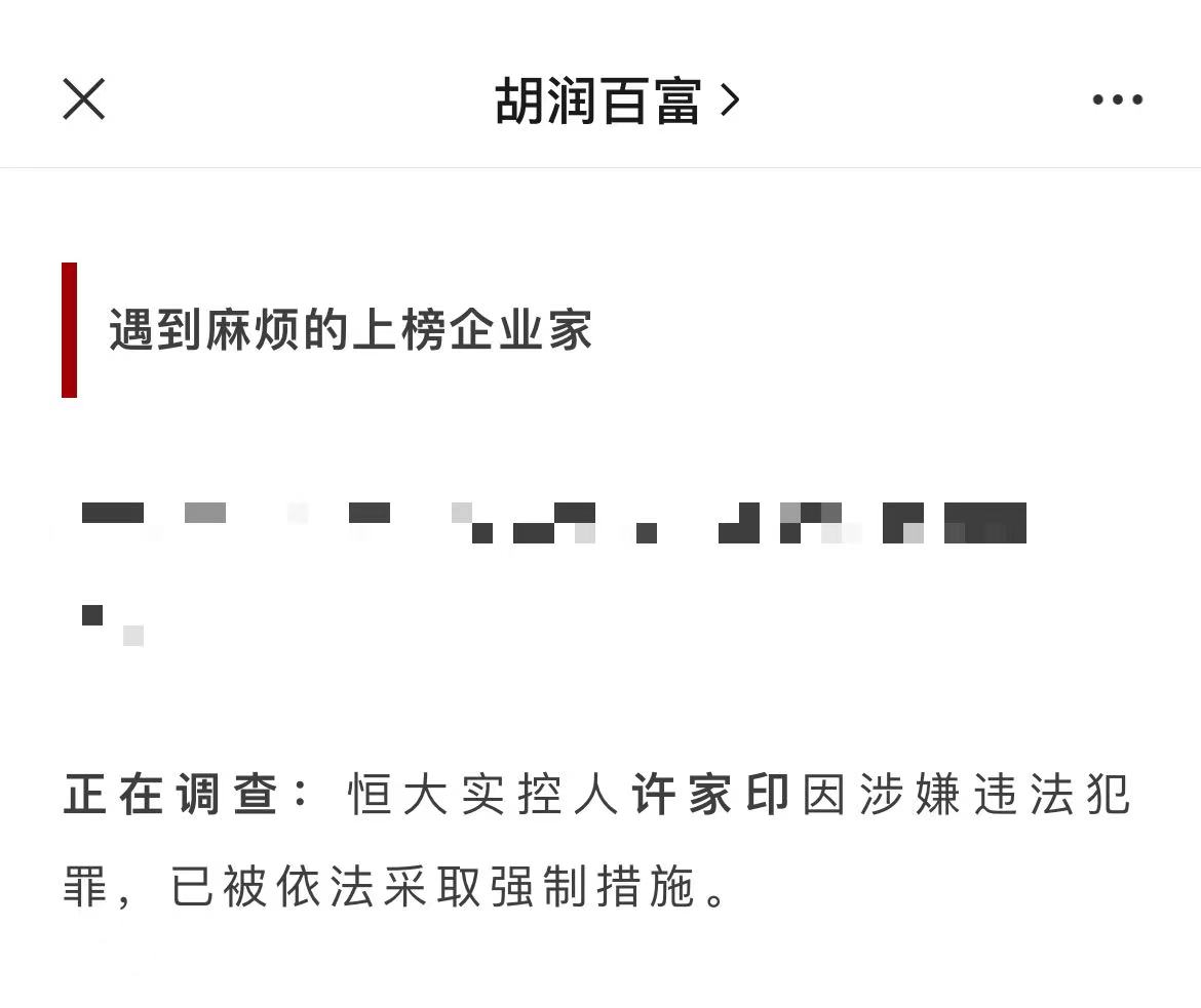 10月24日讯 2023胡润百富榜今天发布,榜单介绍中,许家印已被列为“遇到麻烦的上榜企业家”。