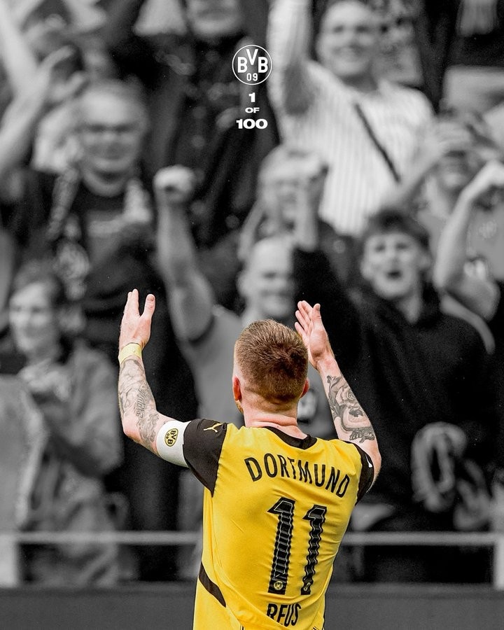 据多特官推统计,罗伊斯在本场比赛第38分钟的任意球破门恰好是他在多特主场打进的第100球,俱乐部也是发布海报致敬:“主场100球,你就是活生生的传奇。”