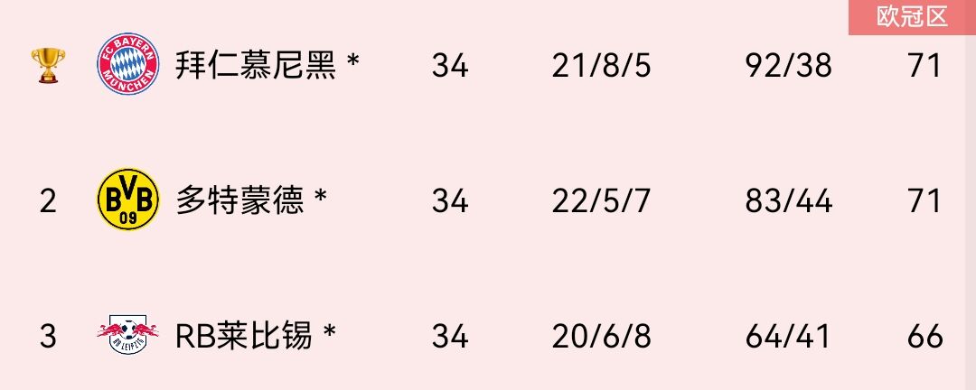 23/24赛季德甲积分榜↓22/23赛季德甲积分榜↓
