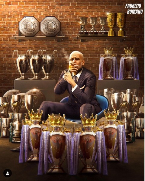 罗马诺INS晒出瓜迪奥拉执教生涯夺冠数据:传奇⭐️