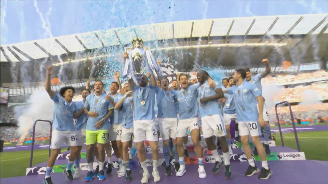 英超收官战,曼城3-1击败西汉姆联,锁定本赛季英超冠军。曼城达成史无前例的英超四连冠,近七个赛季六夺英超冠军。