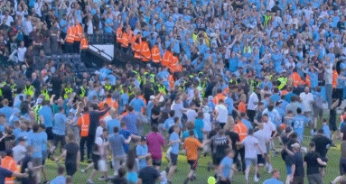 5月20日讯 英超收官战,曼城3-1战胜西汉姆,夺得英超冠军,赛后伊蒂哈德球场已经变成欢乐的海洋!全场球迷冲入球场庆祝!