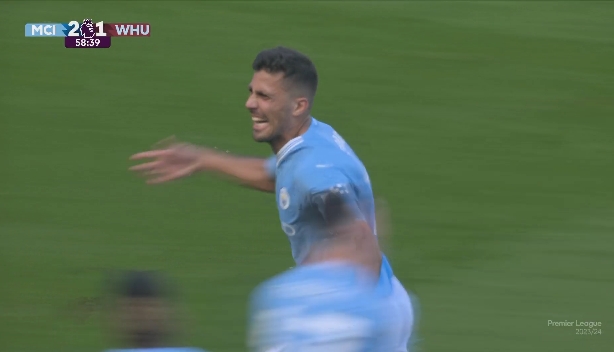 比赛第59分钟,B席禁区内回做,罗德里禁区前沿跟进推杆破门,曼城3-1领先!