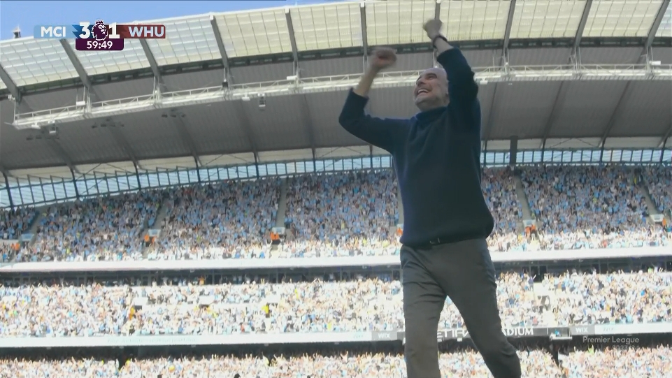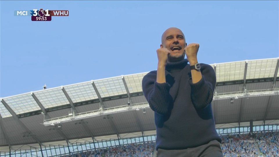 超级激动!罗德里稳住军心,瓜迪奥拉疯狂挥舞双拳,忘情庆祝!