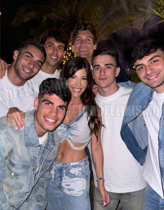 5月22日讯 据推特博主菲利克斯球迷号joaofelixismo晒照报道,菲利克斯、佩德里、费兰、加维、阿隆索等多名巴萨球员昨日参加了女网红Natalia Beciu的生日派