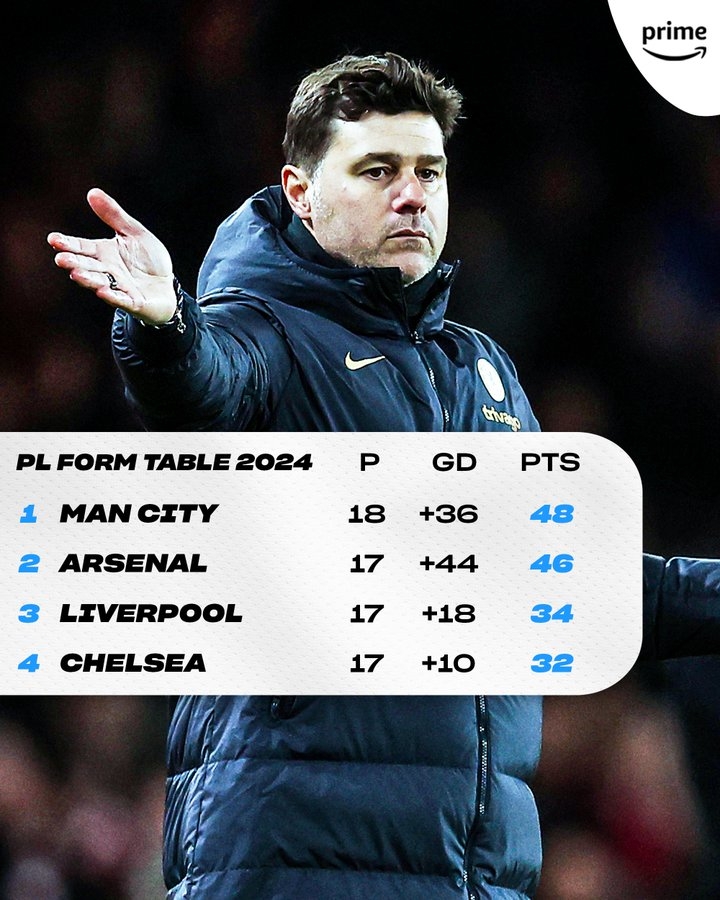 进入2024年,切尔西英超拿分仅次于曼城、阿森纳及利物浦