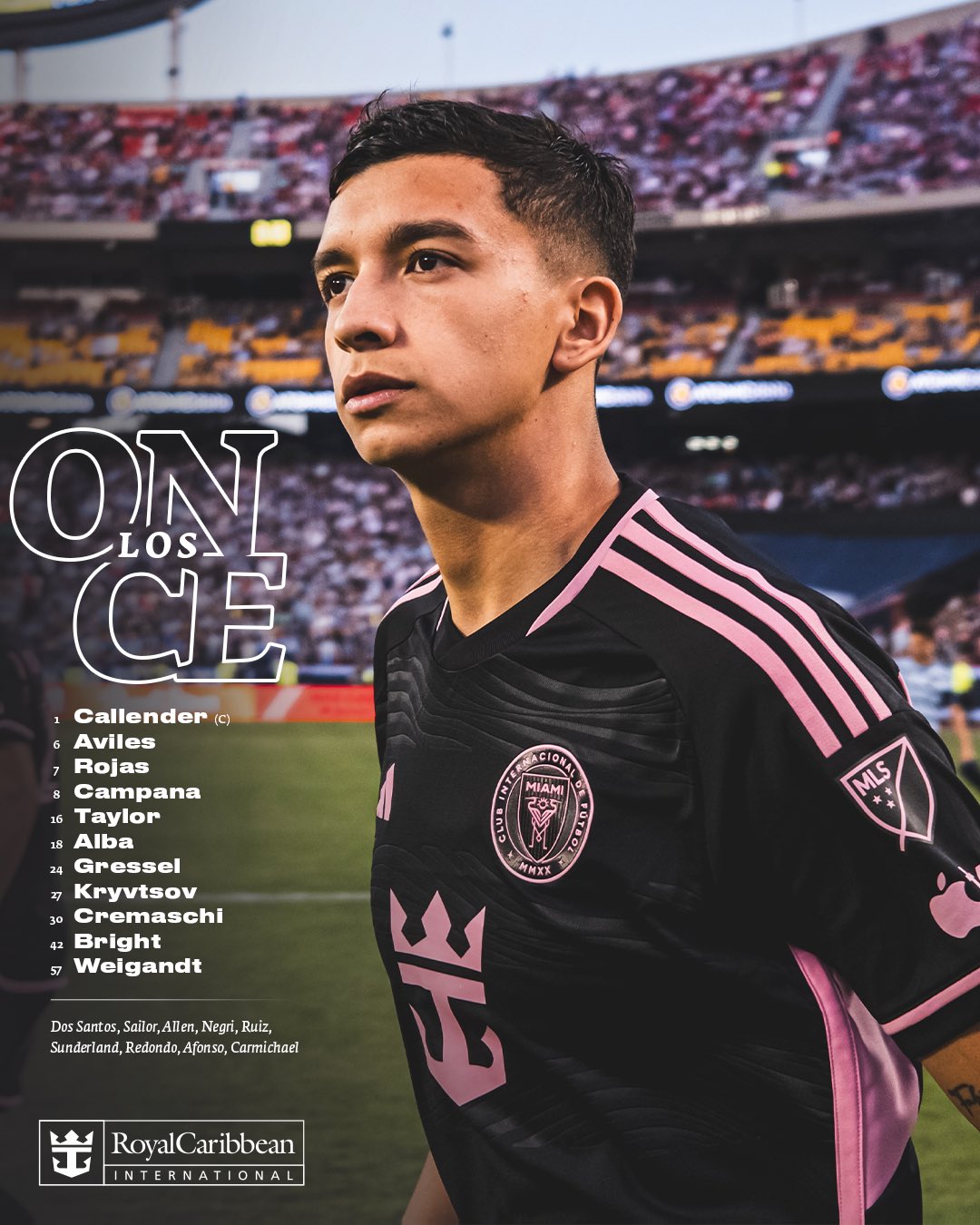 迈阿密首发:1-卡伦德、6-阿维莱斯、18-阿尔巴、24-格雷塞尔、27-克里夫索夫、42-杨尼克-布莱特、57-韦甘特、30-克雷马斯基、7-罗哈斯、8-坎帕纳、16-泰勒