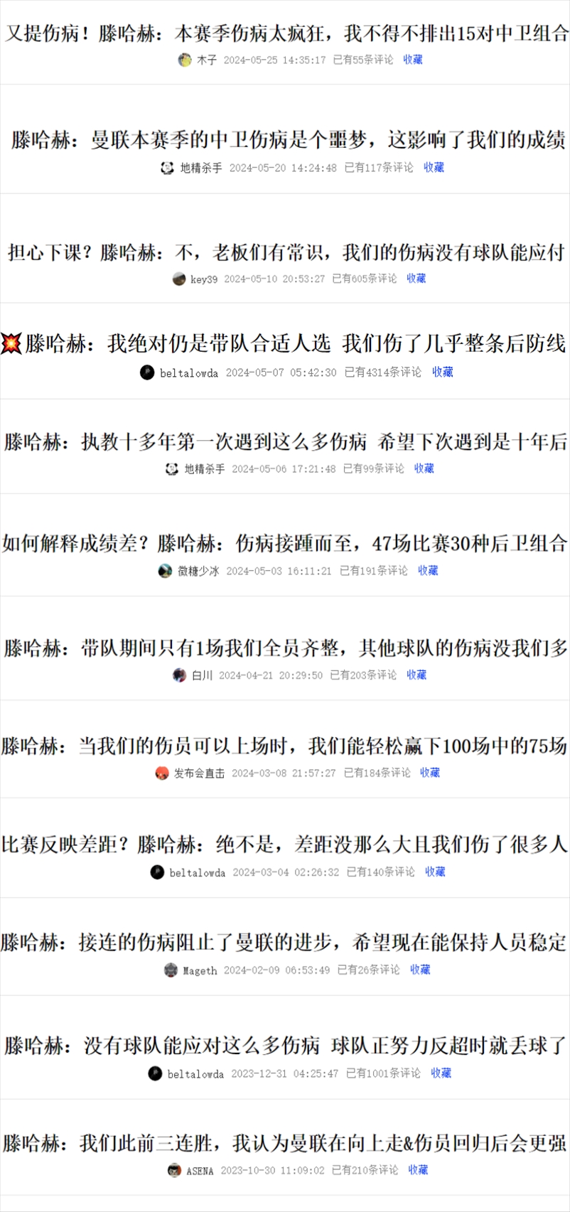 回看本赛季,滕哈赫多次表示球队受到伤病影响,这也一直是球迷热议的话题。