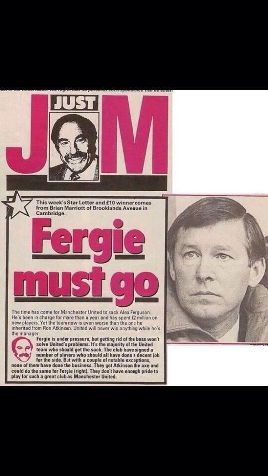34年前,1989-90赛季,曼联在联赛中仅仅排名第13位,报纸当时打出了“弗吉必须走”的大字标题,但弗格森在濒临下课的情况下夺得了足总杯冠军,并因此保住了饭碗,最终开启一代王朝。