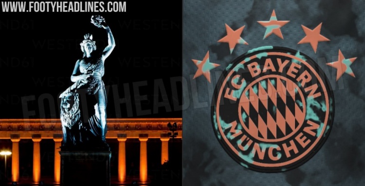 拜仁24/25赛季客场球衣采用锈迹艺术图案,致敬巴伐利亚雕像