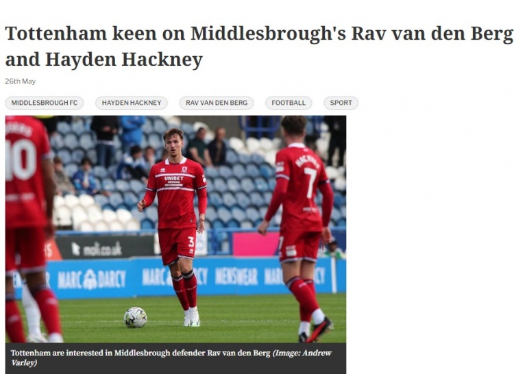 热刺已经将米德尔斯堡双星范登贝尔赫和哈克尼列入到了球队今夏的潜在签约名单。在转会窗重新开启之前,热刺一直在评估球队的引援选择,热刺主帅波思特科格鲁希望能够补强球队,并且在下赛季的欧联杯赛场踢出竞争力。