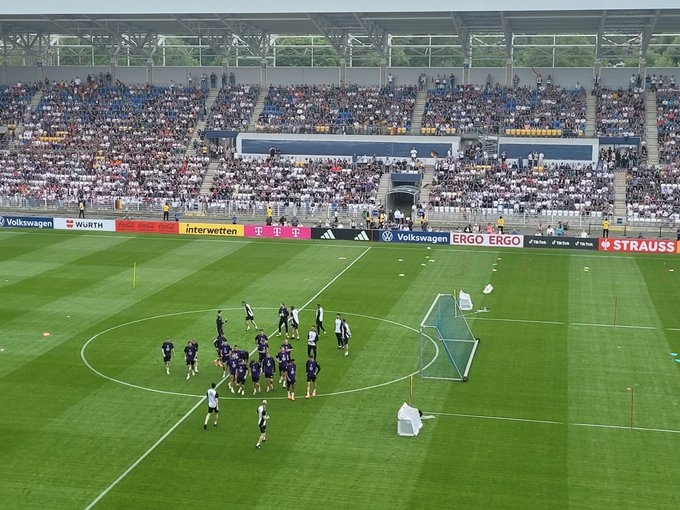 5月28日讯 据记者Patrick Strasser消息,穆西亚拉、萨内等德国国脚首堂训练课只是完成了一些热身。德国队正式开启欧洲杯备战工作,在首日首堂训练课中,一共有1