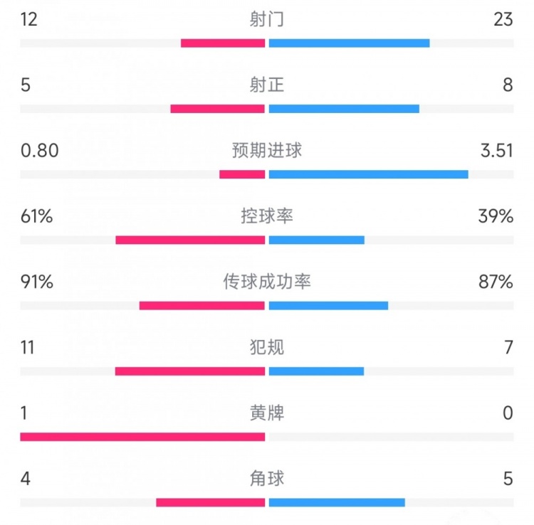 迈阿密vs亚特兰大联数据:射门12比23,射正5比8,控球率61%比39%