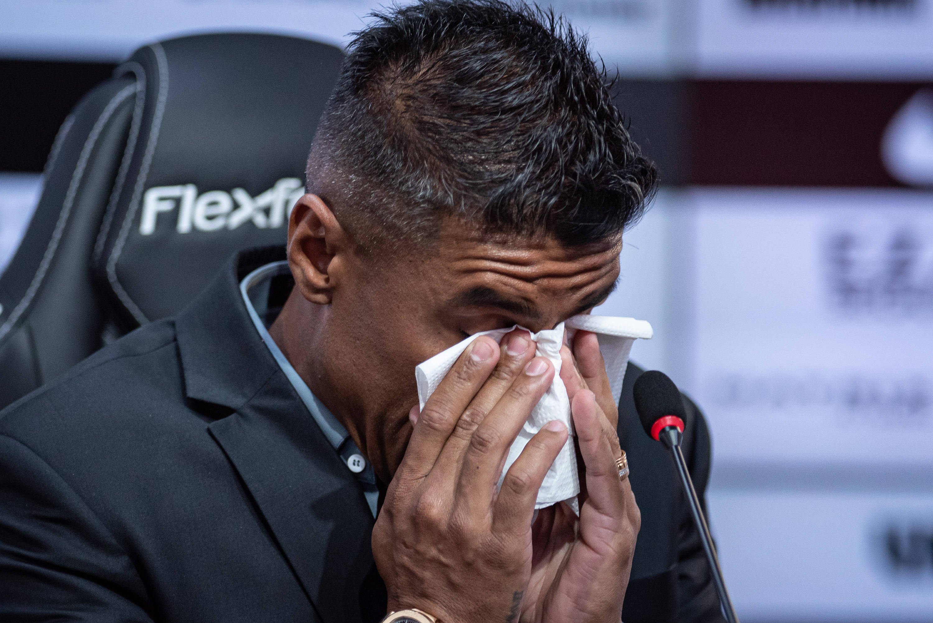 05月30日讯 巴甲科林蒂安俱乐部召开新闻发布会,正式告别35岁的球队功勋中场保利尼奥,保利尼奥情难自已,现场落泪。