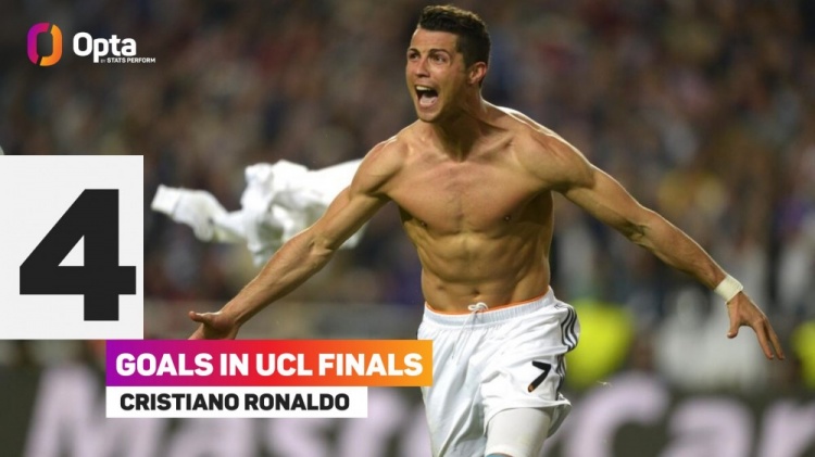 Opta:C罗欧冠决赛总计4球历史最多 贝尔3球次之
