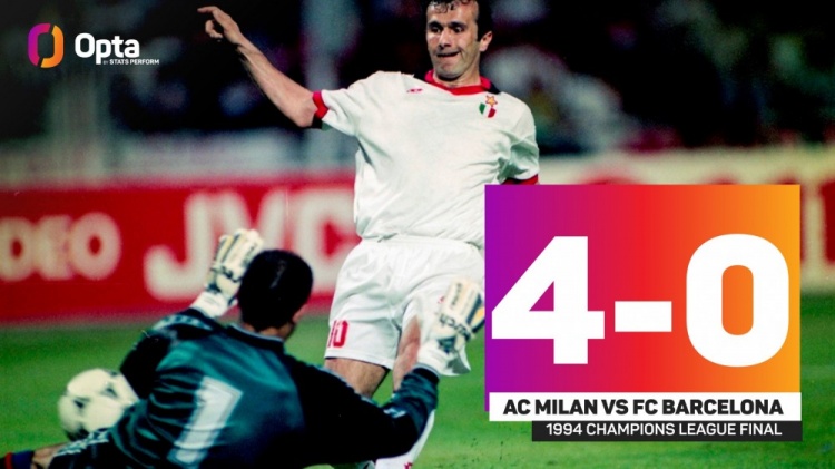 Opta回复:1994年在雅典,巴塞罗那0-4AC米兰。