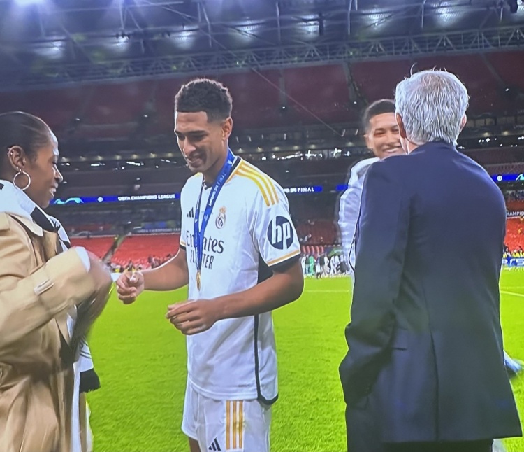 赛后,贝林厄姆的母亲让贝林为她和穆里尼奥拍照。
