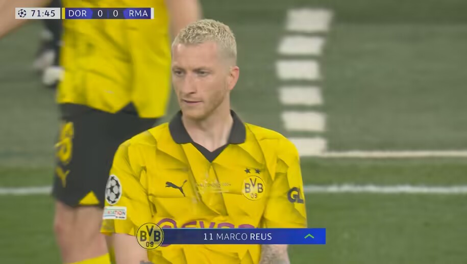 6月2日讯 23/24赛季欧冠决赛,多特vs皇马。比赛第72分钟,多特做出换人调整,阿德耶米被换下,罗伊斯替补登场!