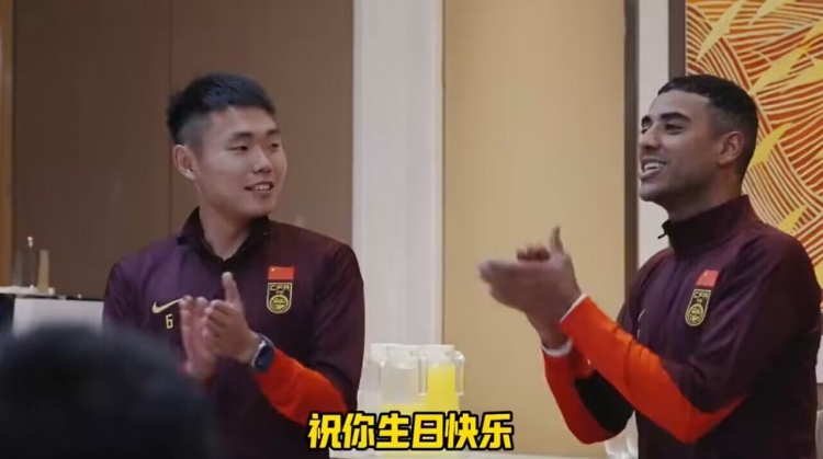 而在庆生仪式上,归化国脚阿兰站在王上源身旁,用中文带领大家唱起了生日快乐歌。