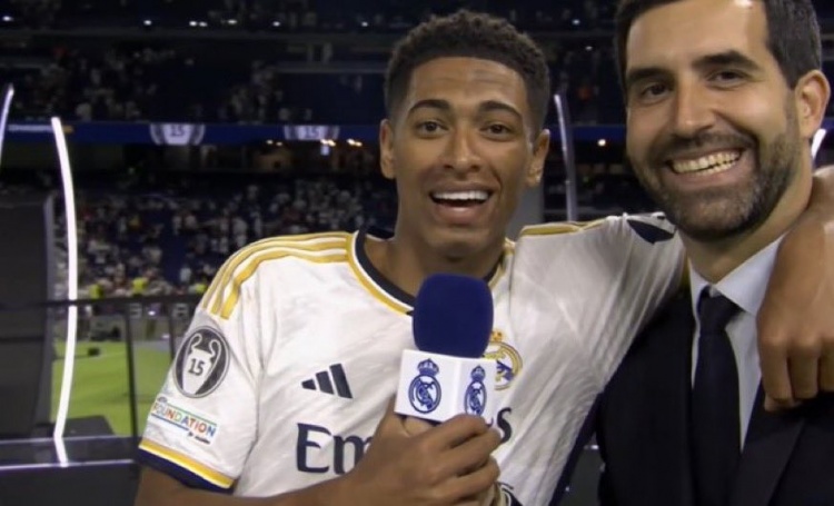 6月3日讯 皇马举行欧冠夺冠游行庆典,贝林厄姆接受了皇马TV的采访,全程说西班牙语。