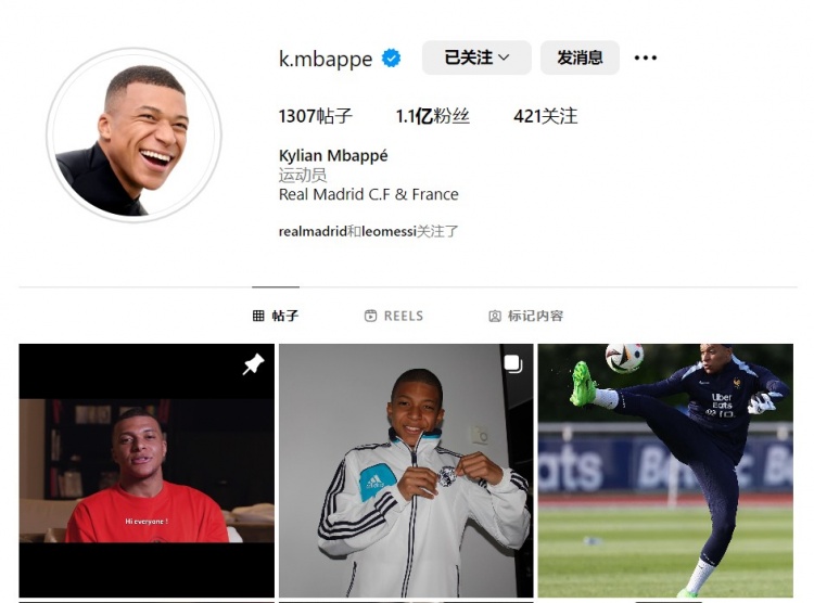 姆巴佩ins置顶帖仍为离队视频&845万点赞,梦想成真帖暂374万