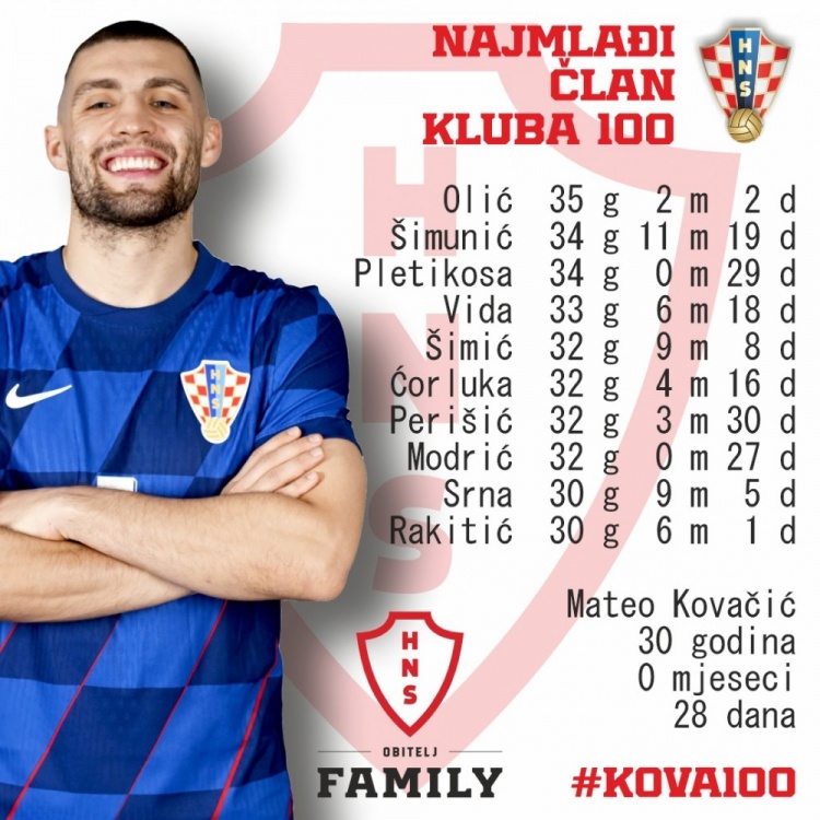 与此同时,科瓦西奇也以30岁零28天成为克罗地亚队史最年轻的百场先生,此前的纪录为拉基蒂奇的30岁6个月1天。
