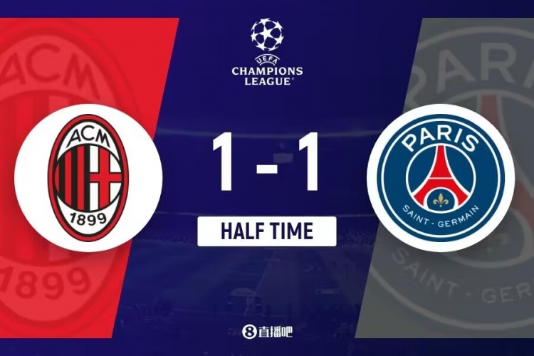 半场-米兰1-1暂平巴黎 莱奥倒钩建功什克破门姆巴佩失单刀