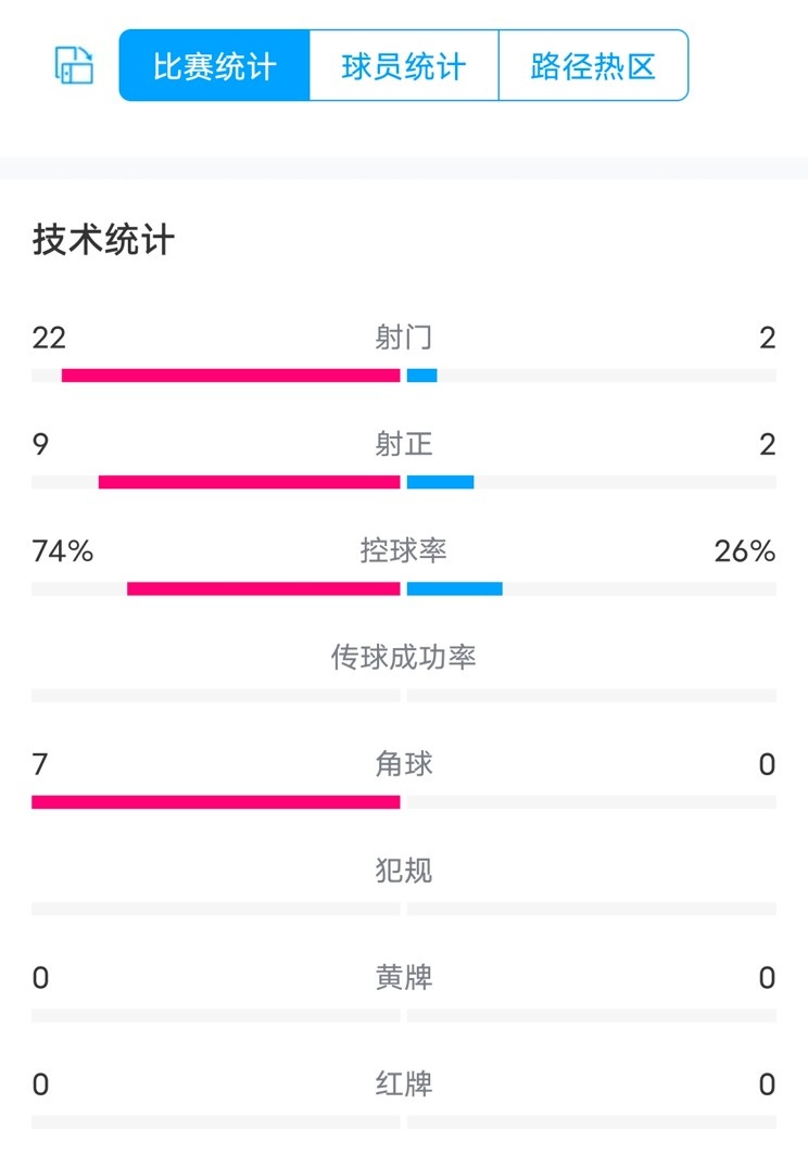 葡萄牙4-2芬兰全场数据:射门22-2,射正9-2,控球率74%-26%