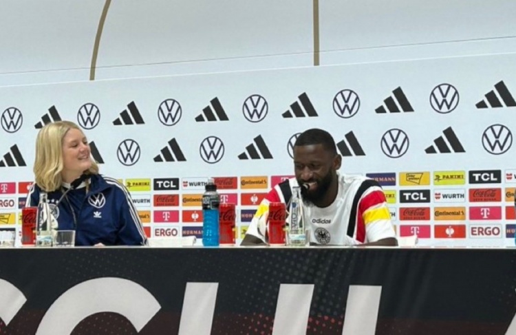 6月6日讯 吕迪格抵达德国国家队,出席新闻发布会。