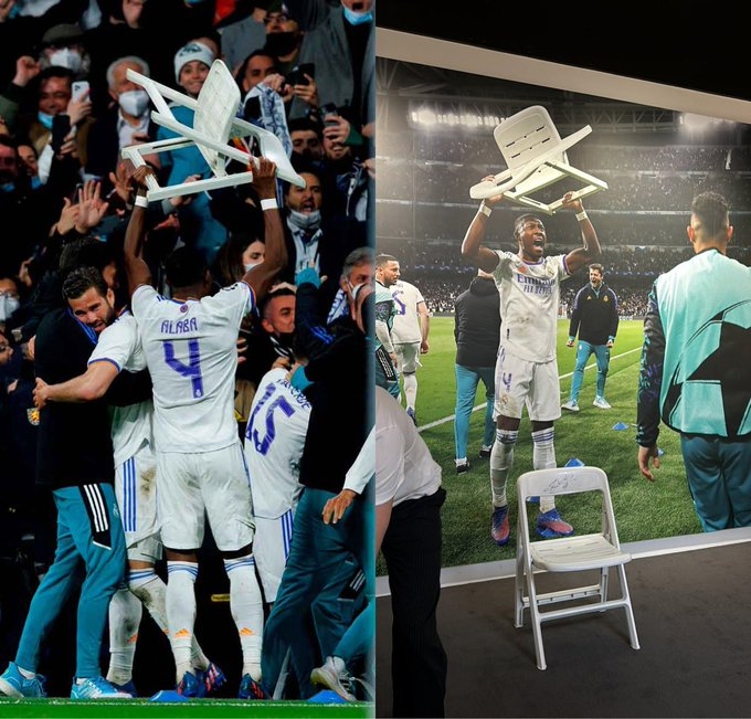 阿拉巴经典庆祝的椅子被放入皇马博物馆,游客可举起拍照